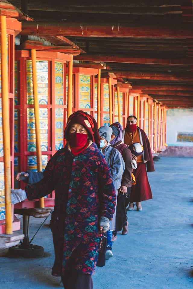 清晨出发前往塔公寺,本以为时间尚早,却已经围满了远道而来的藏民。说远道而来丝毫不夸张,有一家几口,也有好友几人,他们有徒步整夜,有走路100多公里,只为这一场朝拜。