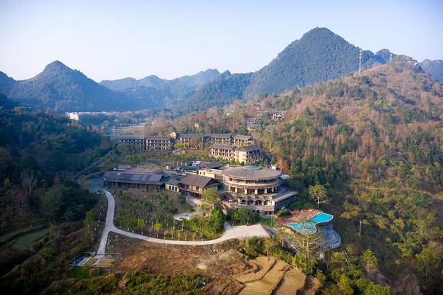 巴马赐福湖君澜度假酒店位于巴马县那桃乡,距巴马县城 10 公里,距百色巴马机场 80 公里。