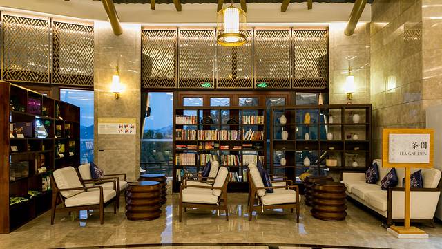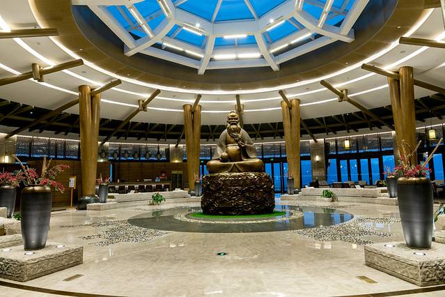 因为巴马是长寿之乡,君澜度假酒店大堂有一个长寿老人的雕像,大堂一周是大堂吧,书吧,可以在这里喝个下午茶,和朋友聊天谈事。