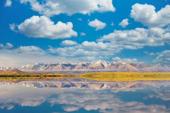 眼前像不像通天河一样,氤氲的水气弥漫着,隐约的山峰倒映着,凉凉的雪风轻抚着,想象吧此刻远处河边走来一只老龟,要驮你过河。是狮泉河这水气扩散了你的思维,是这广阔高原拉开了你的视野,你看到的想象到的,都仿佛在描绘一幅高原山水风光图一样,羡煞了所有未成行的伙伴。进入阿里地区,像通过一道天门似的,真真的是进入了仙境天堂,笔直的路直直通向云霄,不见天边。