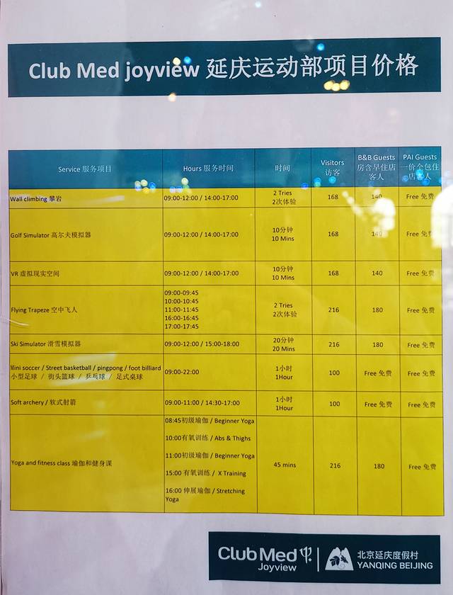 首先延庆Club Med Joyview有两种模式,一价全包和只订住宿。