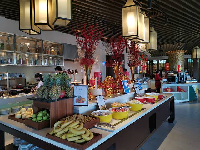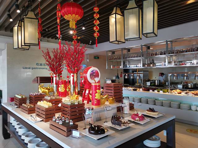 一价全包的小伙伴一日三餐都在寻味国际餐厅内解决,这里分中餐厅和西餐厅两个区域。虽不及传统村的日料区、韩餐区、印度餐、墨西哥餐等分得那么细,但菜品也算是丰富,且味道很好。早起有紫米面和绿豆面的煎饼,午餐晚餐都有铁板烧供应。
