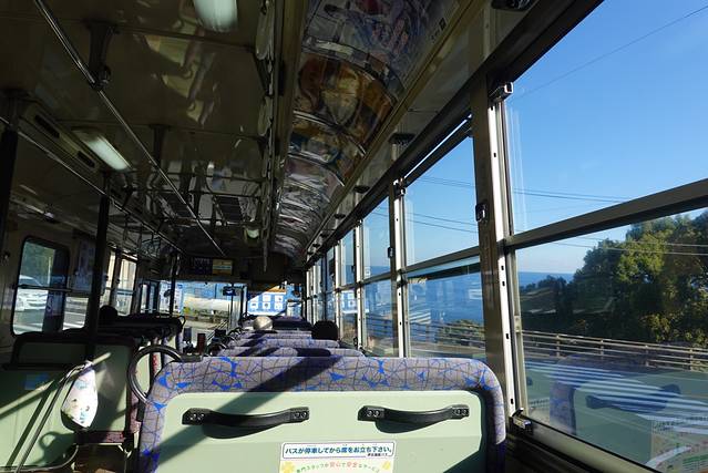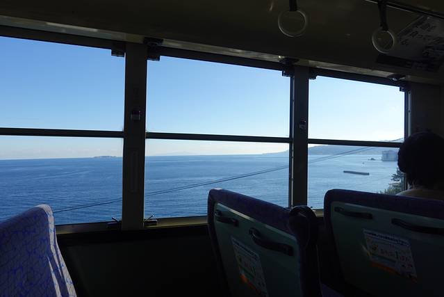 伊豆急行线整条路线看到海的时间还是很多的,其中片濑白田到伊豆稻取这一区间是最靠近海崖最美的一段。建议去热海的朋友千万不要错过。我是到达热海才知道有这么一段,从 东京 出发的朋友大可直接到达目的地,再回头游热海。为了观光方便,他们还出了座位面朝大海的车厢,黑船电车。车次有限,需要提前规划好时间。