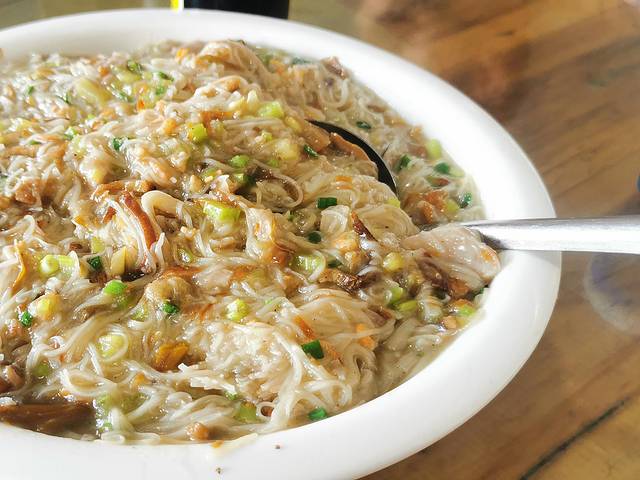 在鲜美的大骨浓汤助力下,黏嫩绵香的芋头与面线合二为一,黄花菜、香菇、虾米等佐料点缀其中,香气诱人,令人口齿生津。