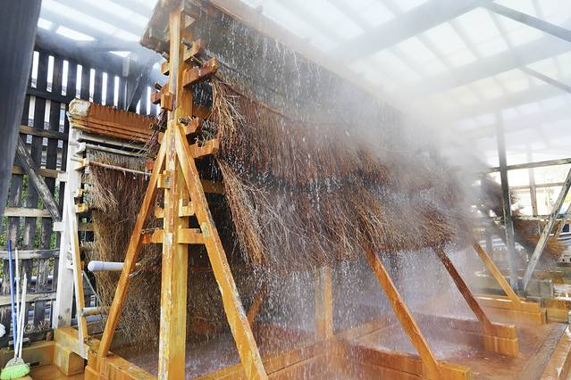 由于不使用水、电和冷却物,所以不会损坏温泉的泉质和新鲜度,实现了100%源泉的温泉循环。竹制温泉冷却装置“汤雨竹”,是以葫芦温泉为中心开发的温泉冷却装置。把源泉传到竹枝里冲走,几秒钟就能把100度的源泉调整到50度左右。这是一种划时代的冷却装置,在箱根、伊豆、云仙、飞弹高山等著名温泉地也被引进。