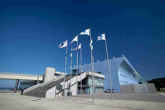 在这个大型水族馆中,可以看到在近海居住的约90种、近1500条鱼在池里徘徊嬉戏,还有有趣的海上动物表演。一楼是美妙的海底世界,分为热带、寒带、科学、海洋、惊奇等多个区域,从海豚池到大珊瑚水槽,从深海生物到雨林水槽,仿佛和海洋生物一起畅游在天际中。