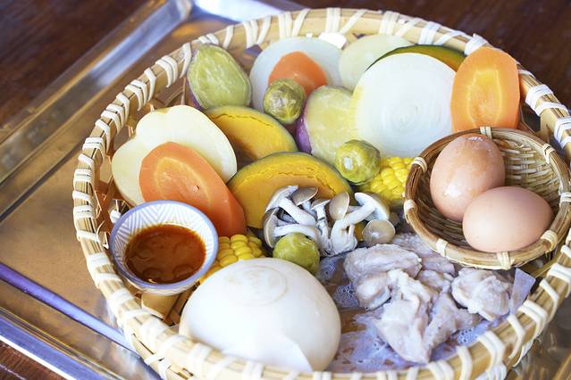 当然,你可以在这里自选菜品,还可以选择外带食材。整个过程都是自助式的,也包括洗碗,非常值得体验。日本的食材素有传统自然的味道,用温泉蒸汽烹饪的美食,更有种自然的清甜。