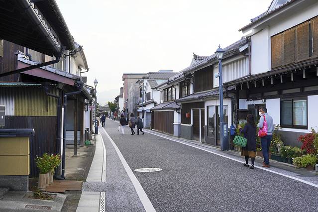 JR日田站徒步15分钟左右、骑行5分钟左右,便见到完整留存下了昔日江户风貌的豆田町。豆田町主要由两条南北向的街道构成,分别是御幸通路和上町通路,两条路之间又横贯有数条东西向小街。街道上宁静而古朴的氛围,让人联想到时间的流逝和昔日的辉煌。