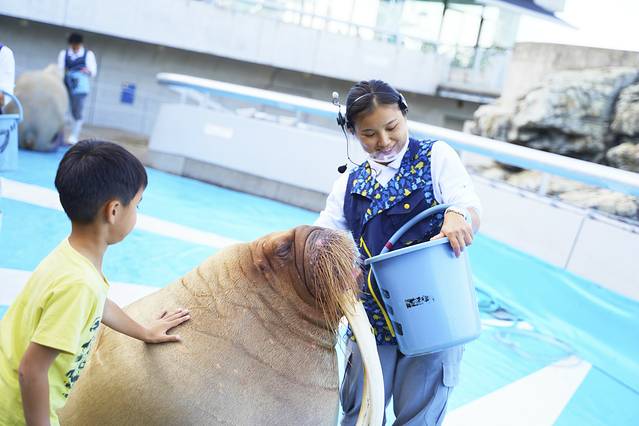 二楼的表演舞台掌声雷动,颇具搞笑才艺的海象,正沉醉在它的表演中。在海风的吹拂下,海象在饲养员的指引下和现场观众互动,引起大家此起彼伏的笑声。这里不但是亲子游的最佳去处,也是情侣和闺蜜之旅的最佳目的地。