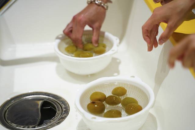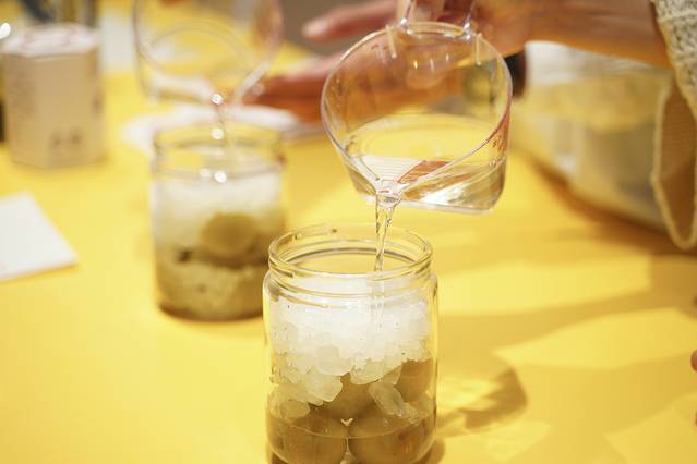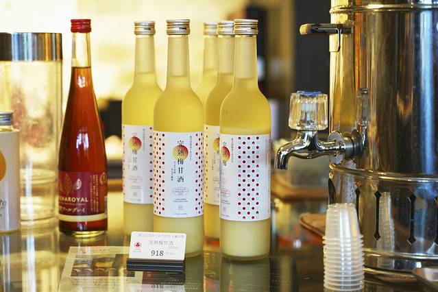自己制作梅酒的体验课程最受欢迎,所以必须预约。刚下来的梅子青而酸,只要泡在酒和糖中,再经过时间的魔法,几个月后就会变成美妙的梅子酒。也有针对不擅长喝酒的人和孩子的商品“制作梅糖浆的体验”。