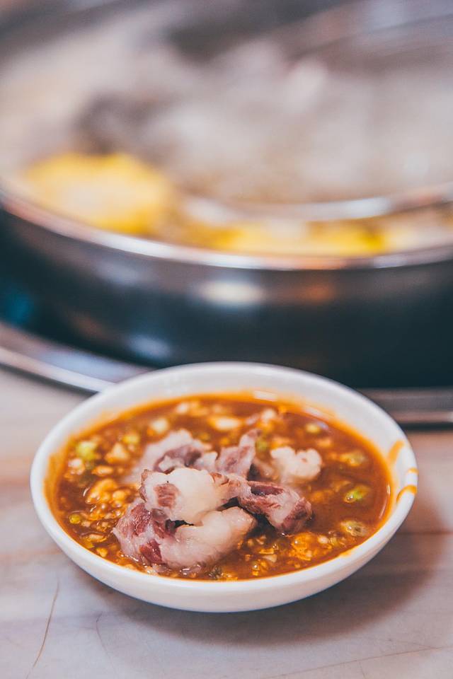 大家一定要品尝,无法用言语来形容多么美味,如果非要问是什么味道的话,那或许就是甜口的麻酱?可以加点蒜泥、耗油、芹菜丁,这是最标准的牛肉火锅蘸料,用涮制8秒的肉轻轻一蘸,脸上都露出满意的表情啦。