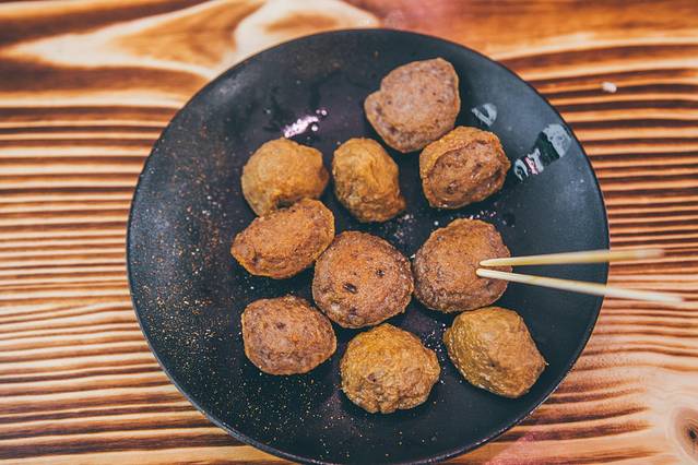 手打牛肉丸也是潮汕当地一大特产,每家火锅餐厅都会有的商品,别看这不起眼的牛肉丸,可绝对是考验餐厅实力的菜品呢,从肉品选择到肉泥制作,非常考验厨师的手法,好吃的牛肉丸,在你咬住的第一口就可以判定是纯牛肉、还是面粉或其他肉混合制品。