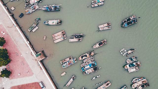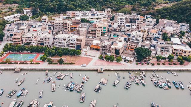 车子开到南澳岛东北部的深澳镇上,这里并没有什么景点,相反,这里似乎充满了本地的生活气息,那一排排看似具有年代感的老楼,是深澳镇最好的见证,当无人机升空后,大大小小颜色各异的渔船出现在了画面了,深澳镇的海风与三囱崖的没法比,这里就像是一座避风港。