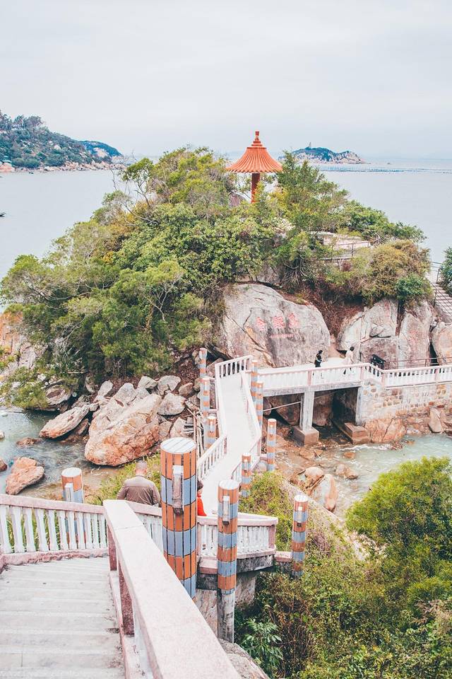 从汕头出发后,驾驶着我们的小灰(租的汽车)一路向东,跨过汕头的主城区,沿着波涛汹涌的海岸线到达南澳大桥,这是座长达10公里的巨型大桥,生活在北方内陆城市的我,也是第一次见到如此壮观的桥,伴随着当天多云的天气,远观南澳大桥,就像从天空逆流而下一样,仙气飘飘啊~