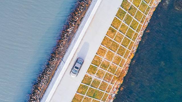在深澳镇有一条建在堤坝上的网红小路,两旁海水颜色不一致,夹杂着绿植,形成鲜明对比,做攻略时也并没有发现这条路,只是开车在镇上误打误撞发现的,应了那句话 “惊喜总在计划之外” 导航可以搜索“深澳镇体育广场” 也就是图片左下角的篮球场,顺着海边小路一直开就可以了。