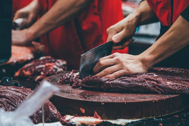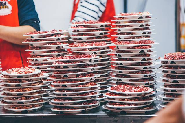 来到杏花吴记已经接近傍晚,上班的已经下班,上学的已经放学,正是晚高峰开始运作的时间,也是买菜回家做饭的时间,杏花吴记的“外卖档口”已经人满为患,这里售卖着刚切好的牛肉,一些愿意在家吃火锅的本地居民可以打包好食材回家享用。