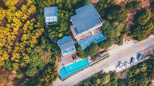 我一直认为旅游不分什么淡旺季,无非是在不同时期看到的景色不同罢了,12月的南澳岛,确实不像夏天那样,到处都是绿色充满生机的样子,但渐黄色的树木穿插在大山之间,才更像是一幅大自然的油画,这座蓝色顶的建筑,就像是空降的一个外星来客。