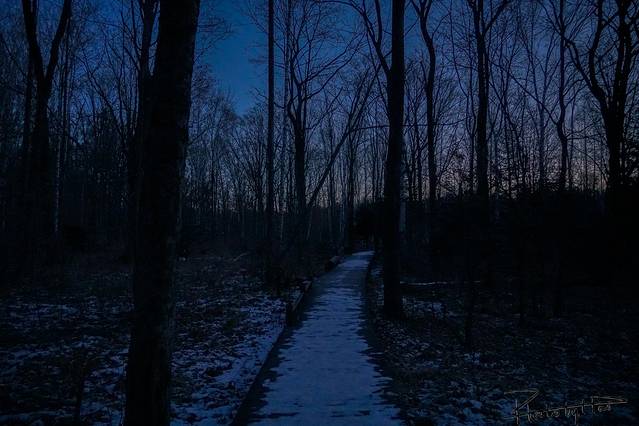 长白山这边冬季的日出一般是早上7点出头的样子,这天我们早上5点多早起,在6点左右到达魔界。这时候天蒙蒙亮,能见度不高,但也属于能看到路的程度。