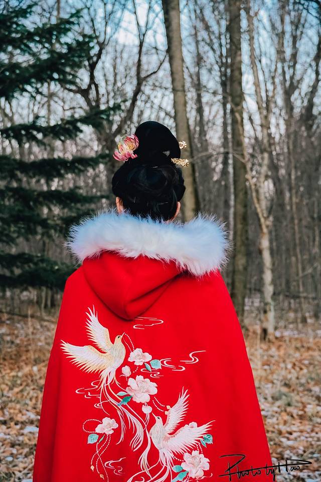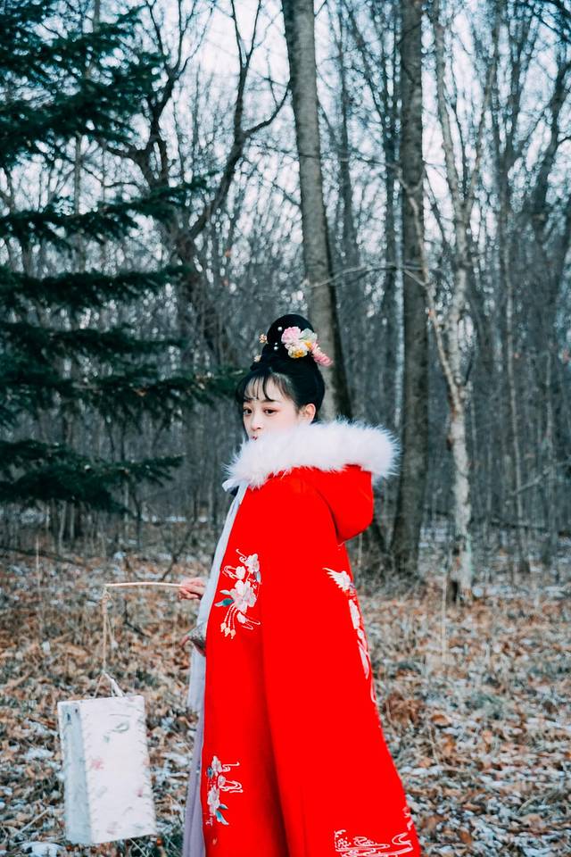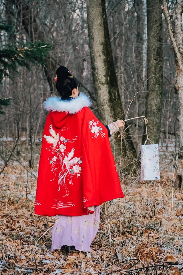 小缅带上了她的汉服和灯笼道具,在林间穿梭。像是从画里走出来的女子。