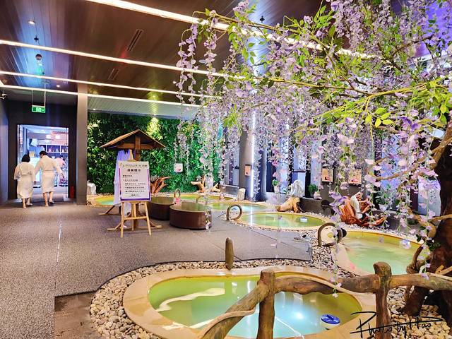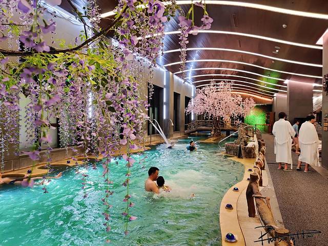 温泉分为室内区域和室外区域,室内区域像一个桃源仙境一般,这边的温泉池内都有理疗按摩的功效,十分解乏。另外还有单独的汗蒸房,石疗房等特色体验。