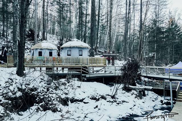 周围到处都是被雪覆盖的木板和植被,当身体第一次接触零下二十度的低温,脚踩冰雪,这个刺激的冰爽绝对让人印象深刻。