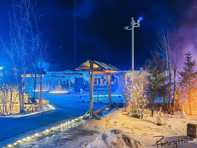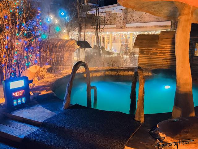当然,最特色的一定是这里的室外区域露天温泉。在零下20度的室外,浸泡在40度的火山温泉中,周围都是皑皑白雪,这种极致的体验是一定要有的。