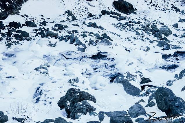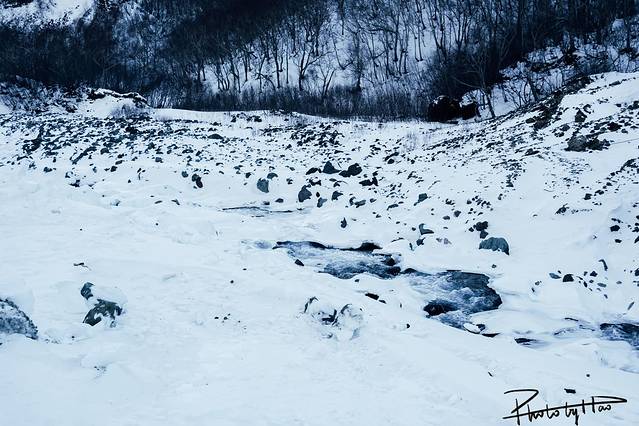整个世界中只有极致的雪白和极致的黑石,流动的雪水活跃在山林间,奏响乐章,预示生机。