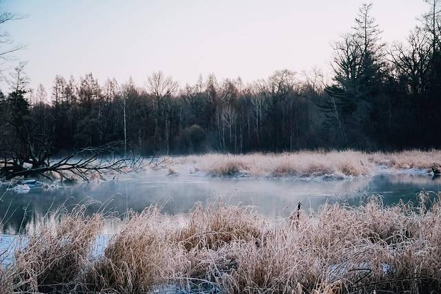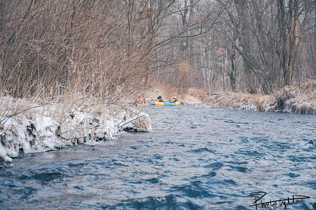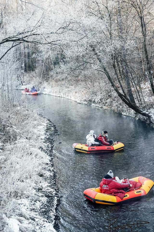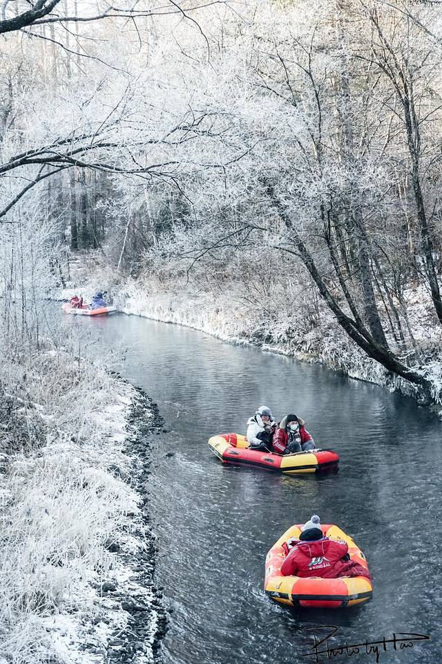 如果清晨漂流,还能在初升的太阳还没给大地足够的暖意前,在满是雾凇的河道中穿行而过。恍如画中。