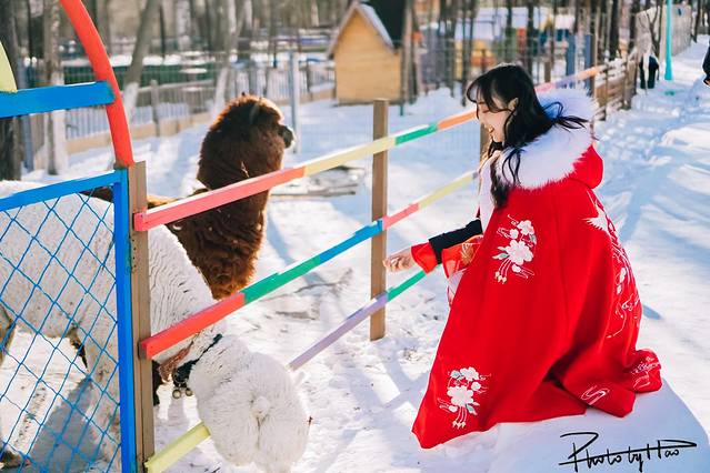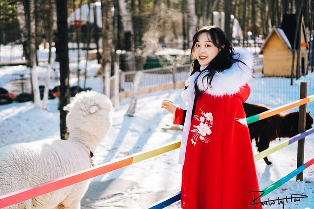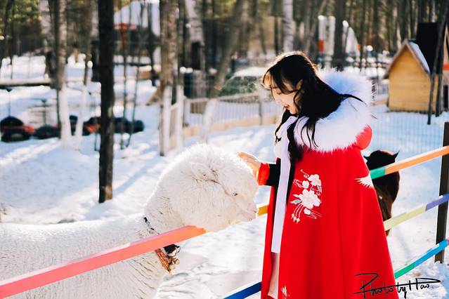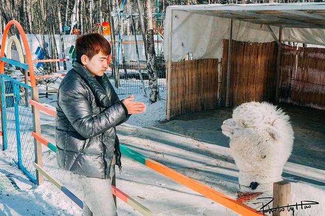兴奋的搓搓小手想和羊驼亲近,但又很怕它向我吐口水(......)