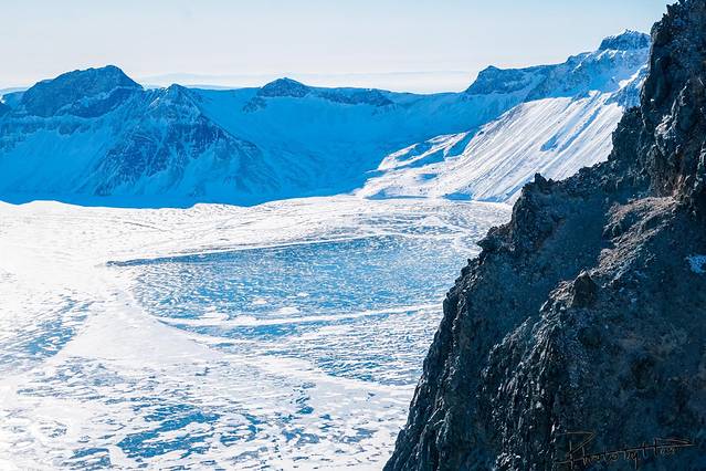 ▼在长白山天池,有幸能一览被冰封天池的壮观和神圣。