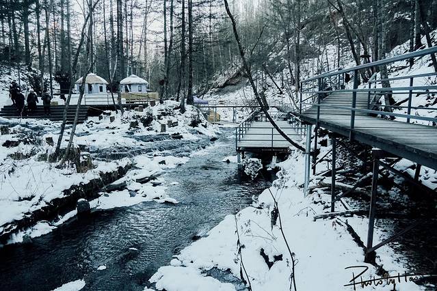 当我知道这里有一个很特别的体验,就是在矿泉水上漂流,我就一下子来了兴趣。以前只有在夏日炎炎的时候漂流过,那时候是享受刺激和清凉。而在这零下十几二十度的室外漂流,不仅是刺激,更是一种独特的超赞体验了。