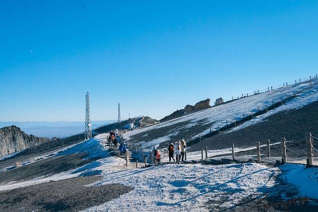 因为提前联系了长白山包车,可以从酒店无缝衔接到天池顶,不需要再经过景区流程和换乘景区专用车,一步直达。着实是十分的方便。在酒店门口上车出发,因为基本是蜿蜒盘旋的山路,所以一上车就开始睡觉,差不多睡了一个小时出头的样子,司机在山顶停车场提醒我们说:嘿,到了。