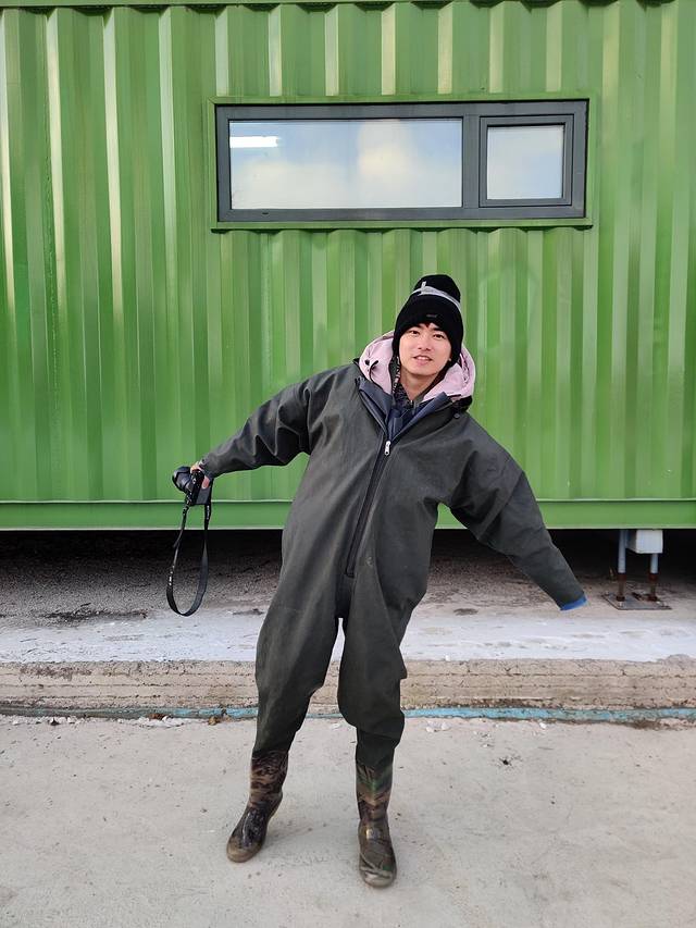 换上漂流中心特制的连体防水服,整个人一下子就变的十分的“憨态可掬”。连体衣内,漂流中心还准备了棉鞋和暖足贴在里面,脚部并不会觉得很冻。只是在东北的室外本身就穿的很厚了,再套上这一整件连体防水服后,整个人变的异常臃肿,行走起来也像一只笨笨的企鹅。
