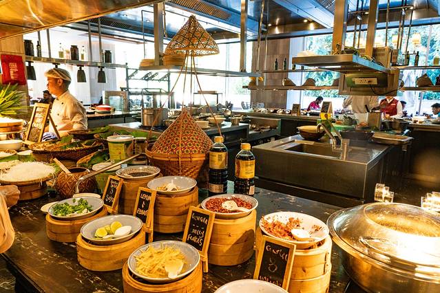 b Café是一家全日餐厅,设有独立的“开放式剧院”烹饪台,可以欣赏到菜品的准备过程。