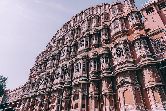 风之宫殿是18世纪中叶的建筑,因其拥有众多窗户的巧妙的设计,使得宫殿内任何地方皆有风可吹入。倘若遇上狂风吹袭,只要将窗门全部开启,大风就会对穿前后窗户,而不致将宫殿吹倒,所以这座风之宫殿,含有屹立不倒的意思。这些砂红色镂空成蜂巢式的窗户呈半个八角形,每当皓月当空,整座风宫便闪闪发亮,所以这里又被称为“月宫”。