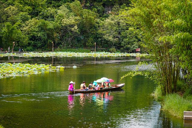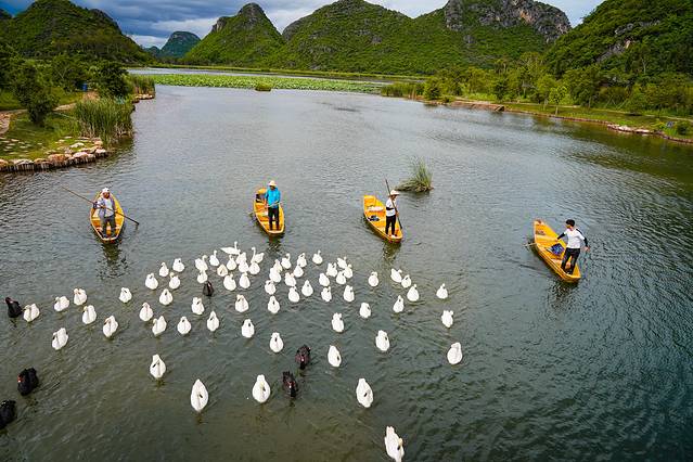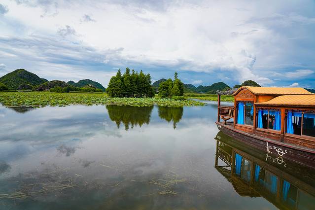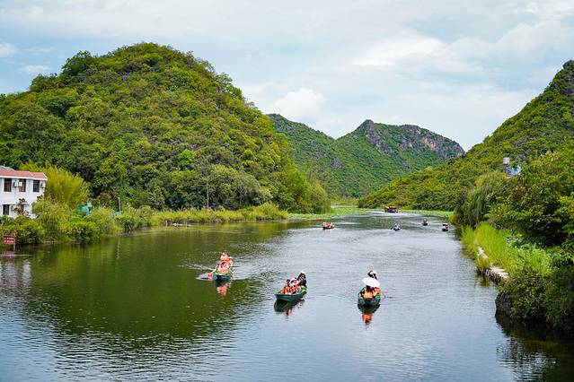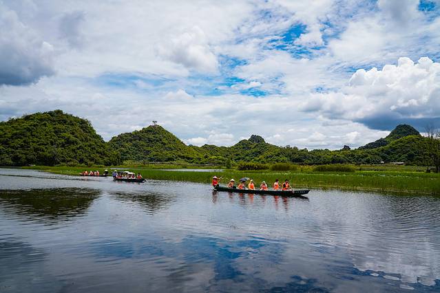 这里可以继续转乘2号线电瓶车到普者黑的核心景区,也可以在这里坐画方舟,游览湖光山色。