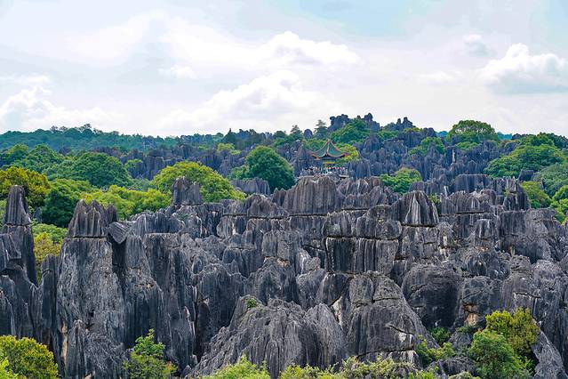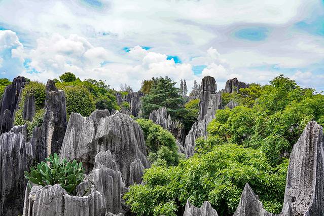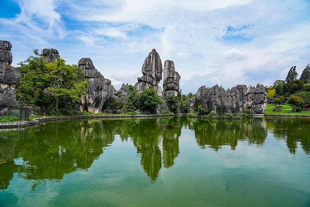 石林的喀斯特地貌形成于2.7亿年前,景区面积大约350平方公里,境内奇石、湖泊、瀑布、溪流、溶洞纵横遍布,风景美不胜收。