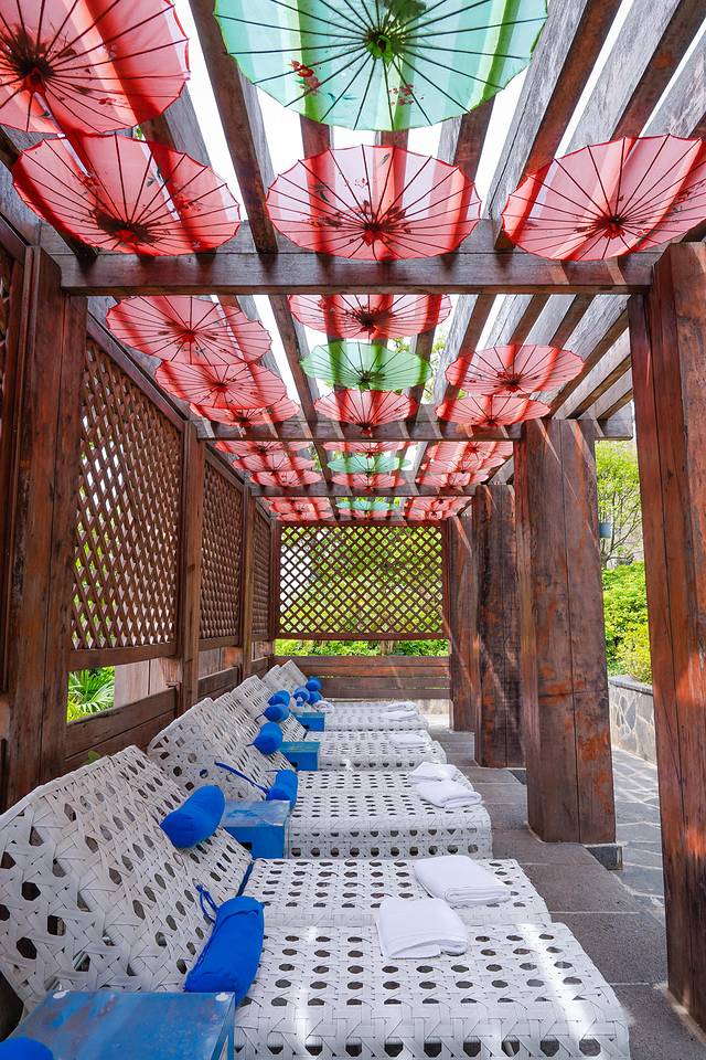 室外的温泉区很大,植被也很丰富,直接成了天然的屏障。