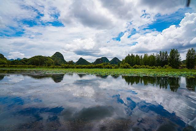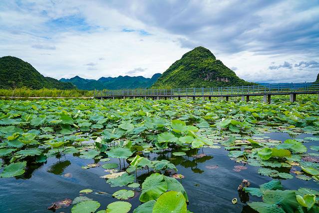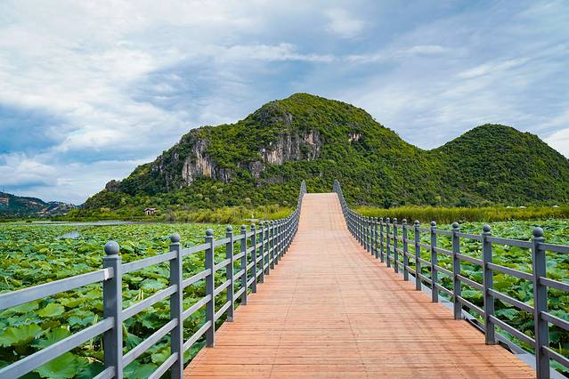 从普者黑的游客中心,我们景区的1号线(电瓶车)第一站就是普者黑的湿地公园。