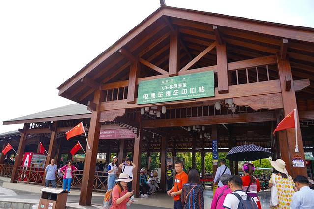 然后停车场有免费的电瓶可以直接到游客中心买票,然后再继续进行景区游览。