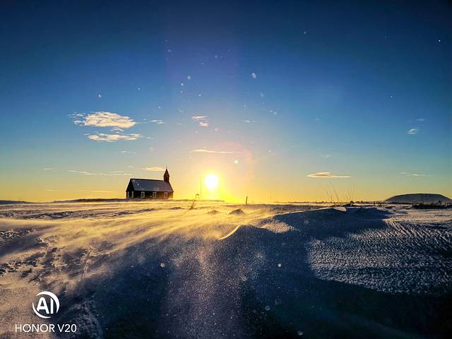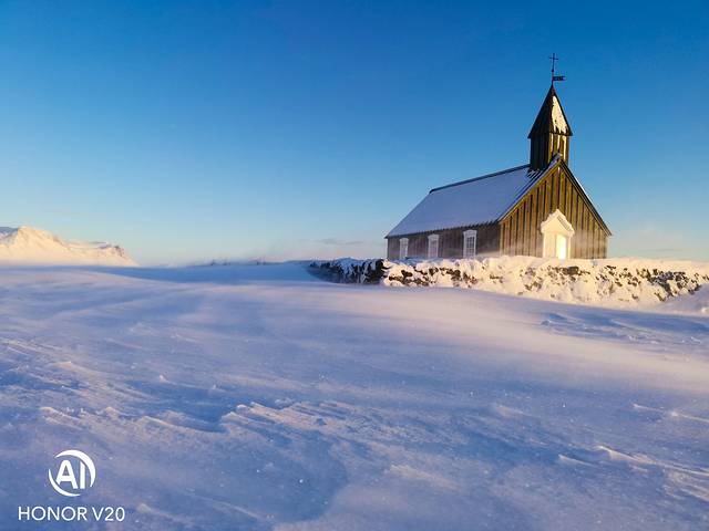 Snaefellsnes南岸的布迪尔黑教堂,被称为西奈山半岛半岛必游景点之一。