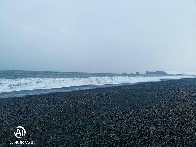 这里的沙子在阳光下泛着乌亮的黑色光泽,