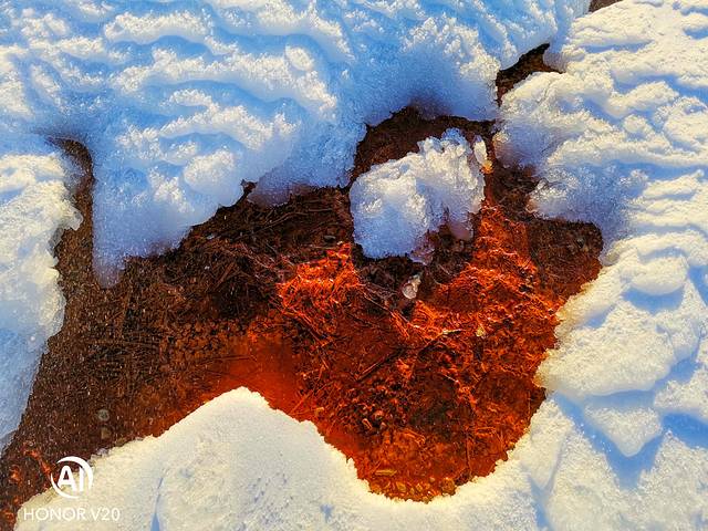 这里好像有地热泉,富含各种矿物质。一直都不化。