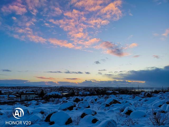 在冰岛,太阳下山后的光线特别美。整个城市都好像加了一层滤镜一样。