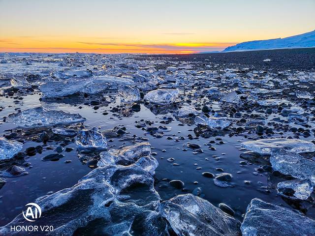 黑沙滩上搁浅着一颗颗闪烁着钻石般光芒的冰钻,这里也是冰岛最大的自然宝藏。