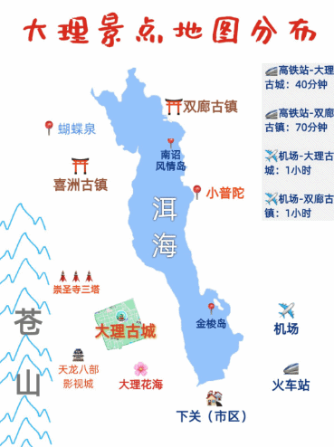 D3️⃣:洱海(3小时)-大理花海(2小时)-大理古城(3小时)