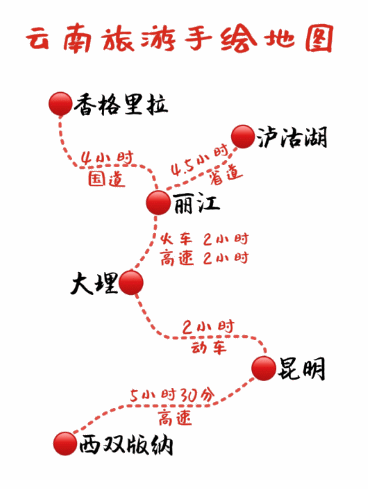 P3:昆明+大理+丽江地图大致分布和交通时长-