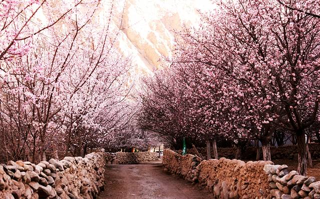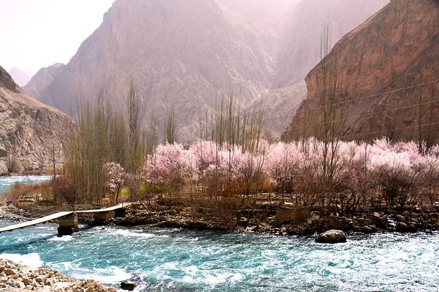 幸福五号桥,跨叶河闻杏花见塔吉克人家。