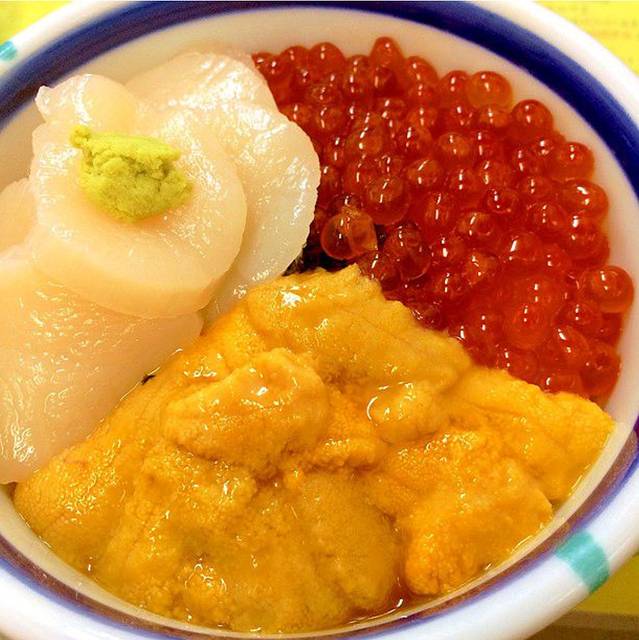 来北海道,肯定想吃一碗鲜美的海鲜盖饭吧。 “きくよ食堂”是一家历史悠久的店,成立于1956年,是一家非常有名的餐厅,许多媒体都有报道。 函馆早市设有总部和分部,两者的开放时间为05:00至14:00(12月至4月的开放时间为06:00至13:30)。要注意除元旦(日本过新年)外,全年无休。招牌就是“元祖函馆巴丼”。 相当豪华,有新鲜的鲑鱼子,海胆和扇贝等。 价格偏贵,但是可以一次享用7种北海道新鲜食材我觉得还是超划算的有没有。