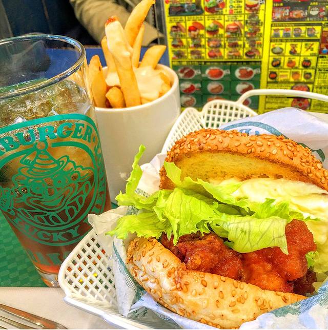 迄今为止,中国鸡肉汉堡是最受欢迎的菜单。 它的高度为14厘米。 除此以外,薯条也很有特色,有放起司和酱汁,是拿喝水的杯子装。还有盖饭等菜单很丰富。函馆当地汉堡第一店。